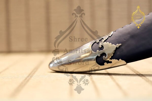 Beautiful indian teg sword to add to the collection. complete your arsenal with this broad indian teg sword. The shape of the blade of the sword is known as the “Teg” or Tega( broad sword ) in the native language. The blade is made of carbon steel with 2 fullers on the blade, 30 inches in length, and 1.5 – 2 inches in breadth. The hilt and the chape of the scabbard are made of iron. The scabbard is made of wood wrapped in genuine blue Leather( color can be changed acc to the customer’s choice). To place an order kindly fill the inquiry form.