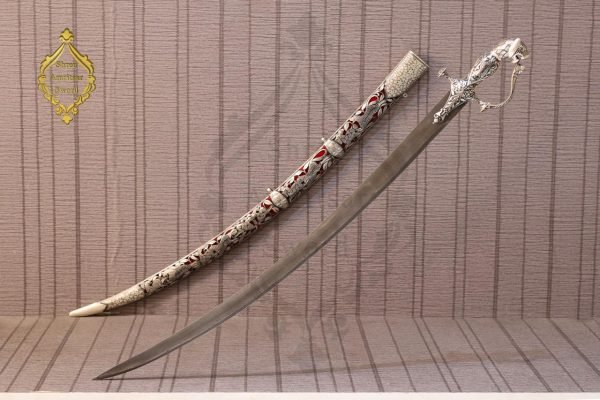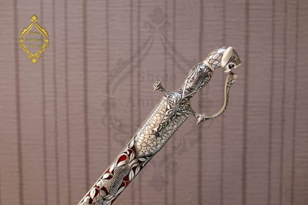 The matching scabbard is equally eye-catching, decorated with detailed silver work and deep red inlay. Whether you’re a collector, history lover, or looking for a one-of-a-kind gift, this sword is sure to impress!
