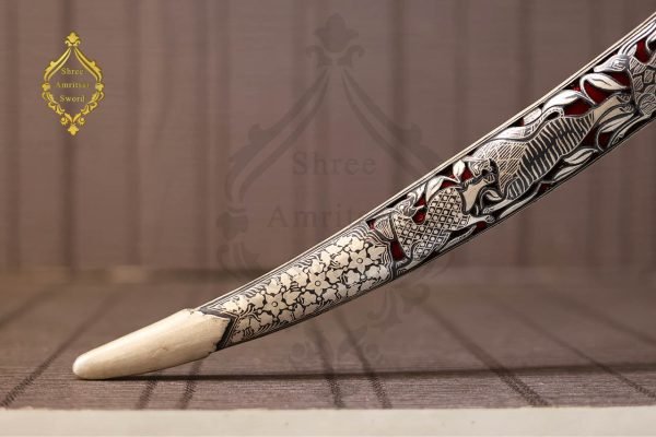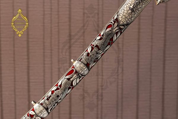 - Decorative Scabbard – Covered in silver and red design work
